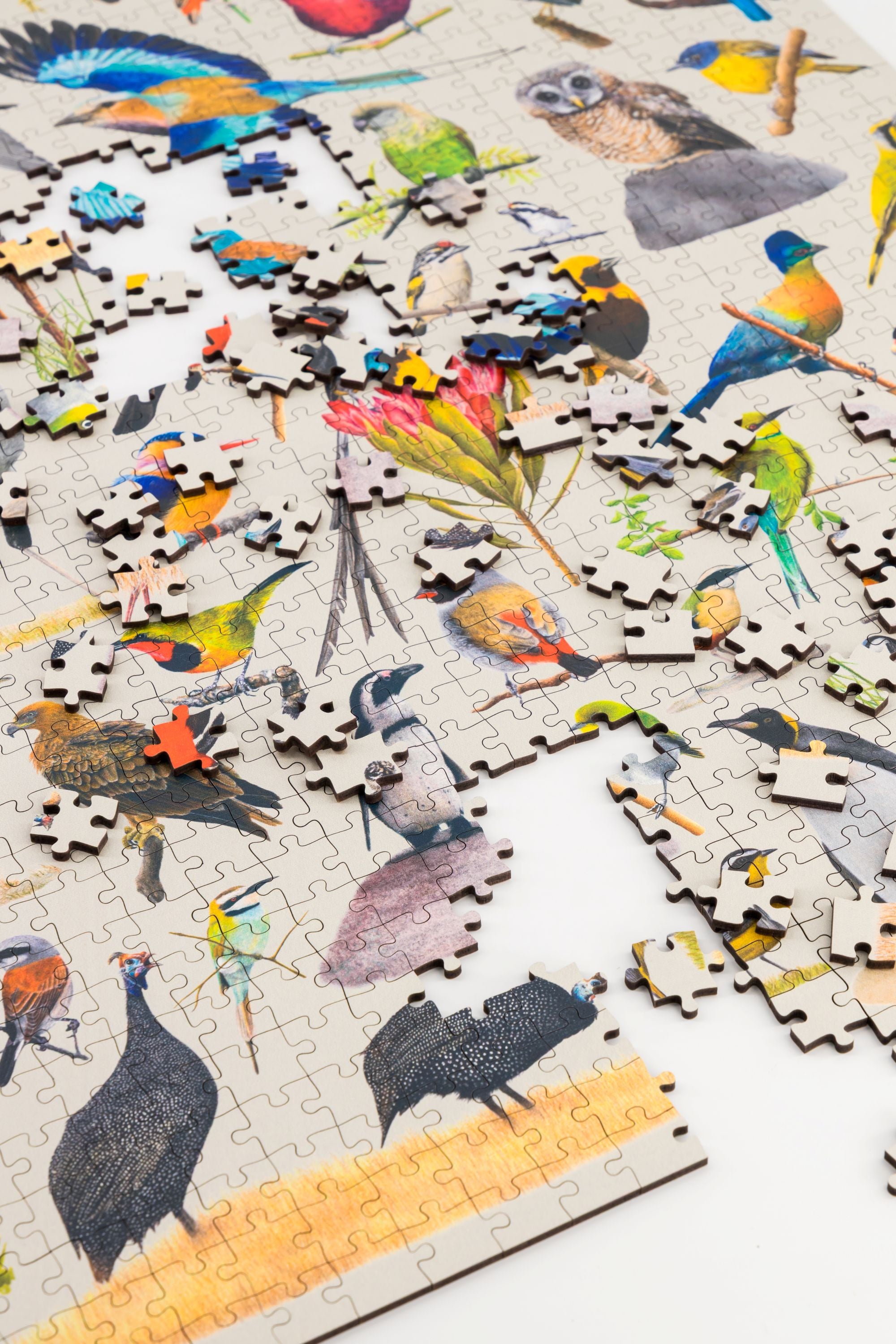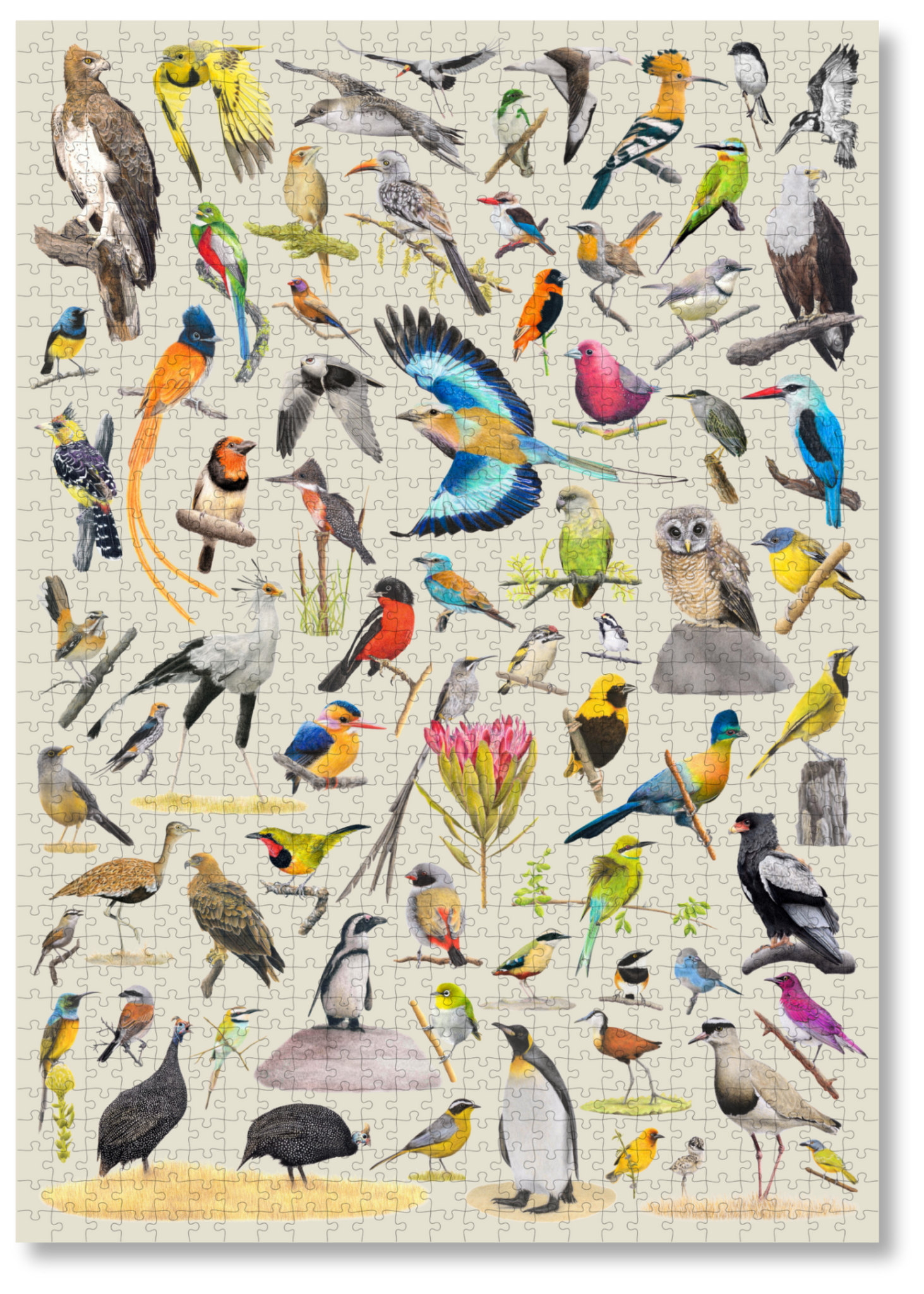 Birds of South Africa is a premium wooden jigsaw puzzle that features 68 different bird species, hand drawn by Matthew Bell. This puzzle is an exquisite tribute to South Africa's vibrant birdlife.