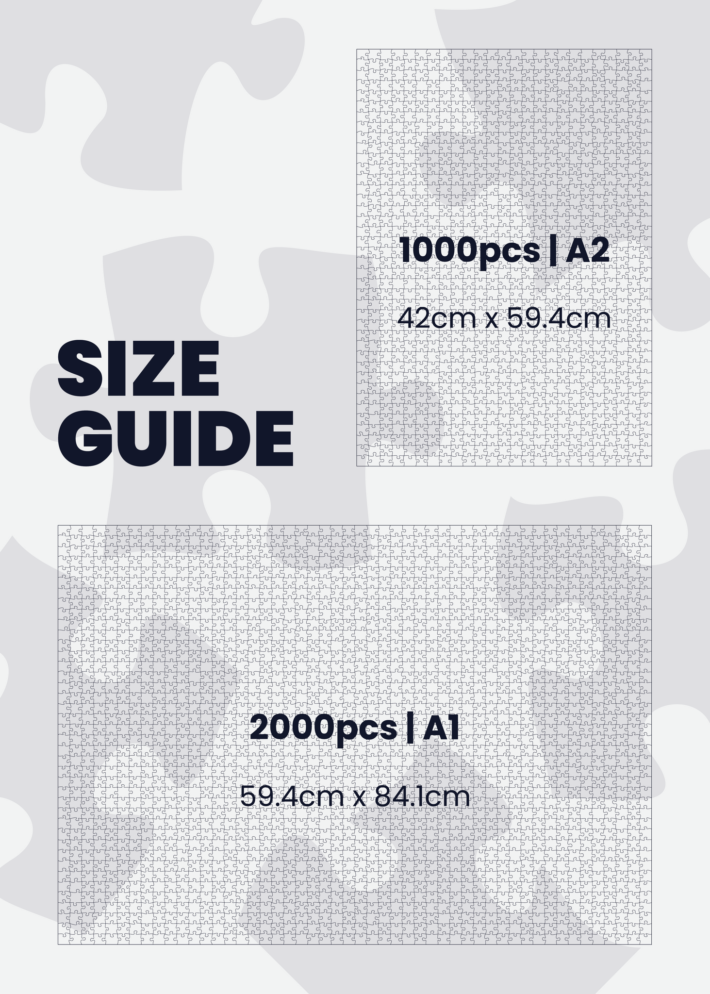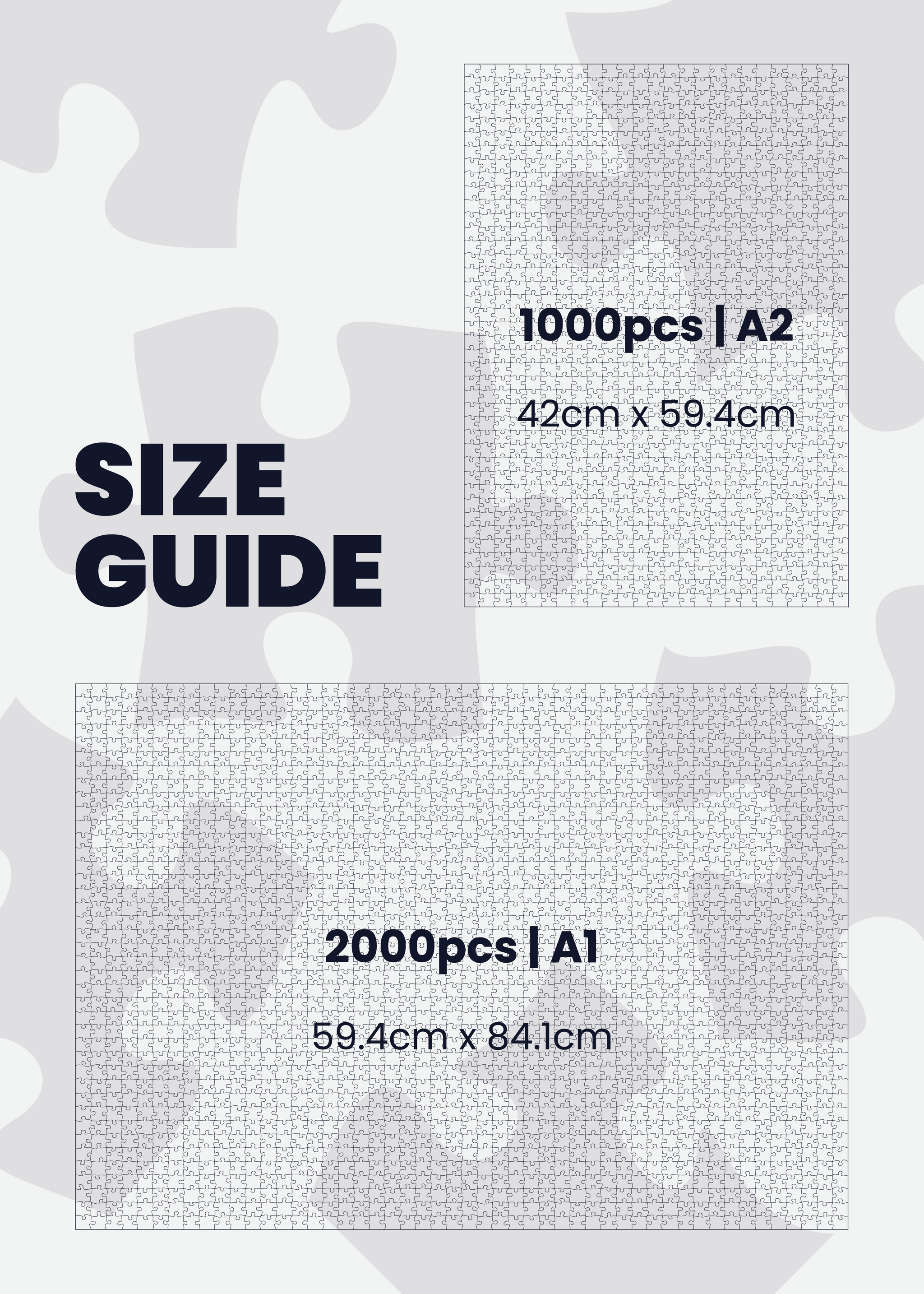 *All A2 puzzles come in printed boxes and all A1 puzzles come in plain boxes with a belly band.